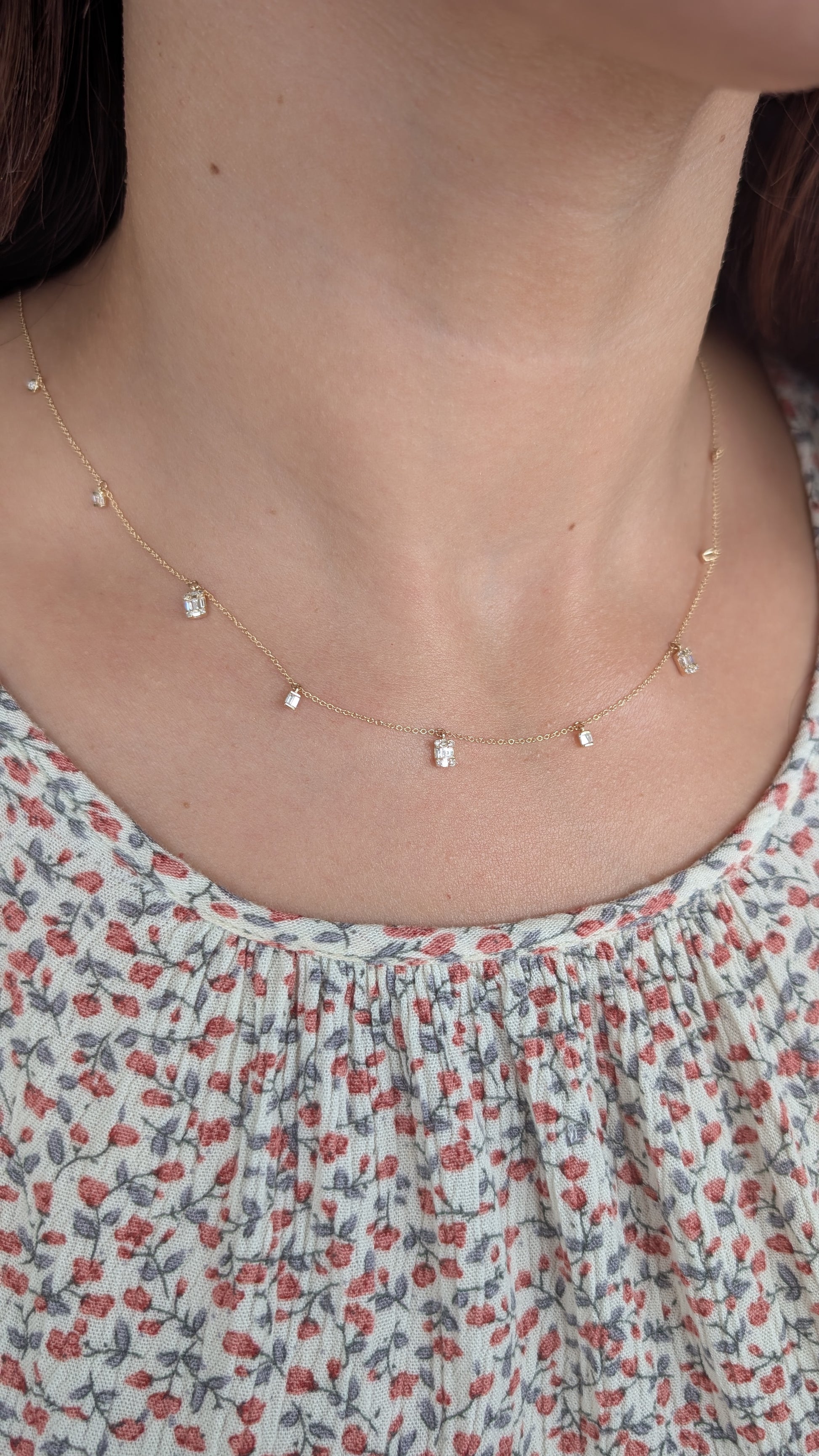 Bigger and smaller baguette stations and round bezels at the ends