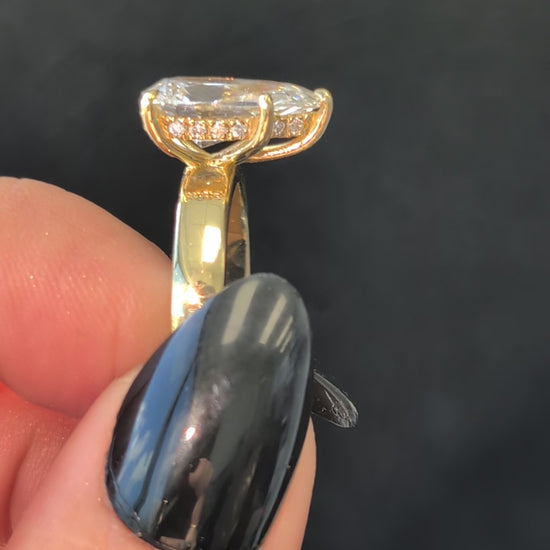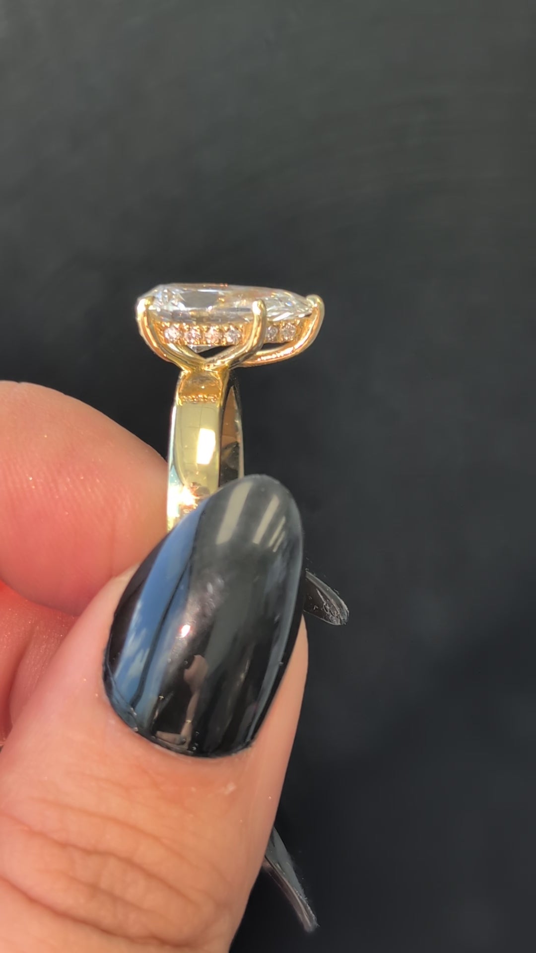 • Hidden diamond halo underneath the stone